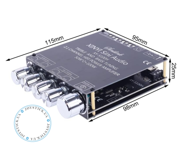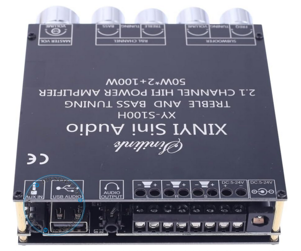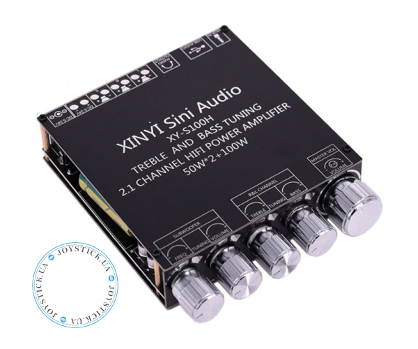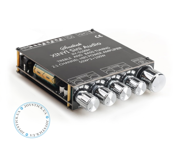 Sinilink XY-S100H — це сучасний 2.1-канальний аудіопідсилювач класу D на базі мікросхем TPA3116D2. Він забезпечує потужне та чисте звучання: по 50 Вт на кожен стереоканал і 100 Вт на канал сабвуфера. Завдяки вбудованому модулю Bluetooth підсилювач підтримує бездротове з'єднання на відстані до 15 метрів без втрати сигналу.